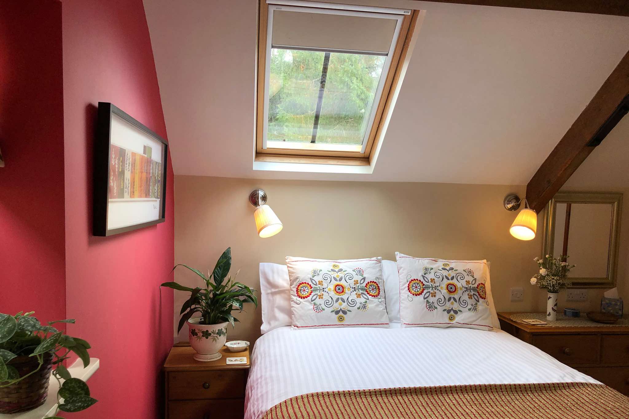 There's a double bed with quality bedding and sprung mattress, hairdryer and an en-suite with shower over bath, large fluffy towels on heated rail and complimentary toiletries.