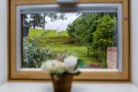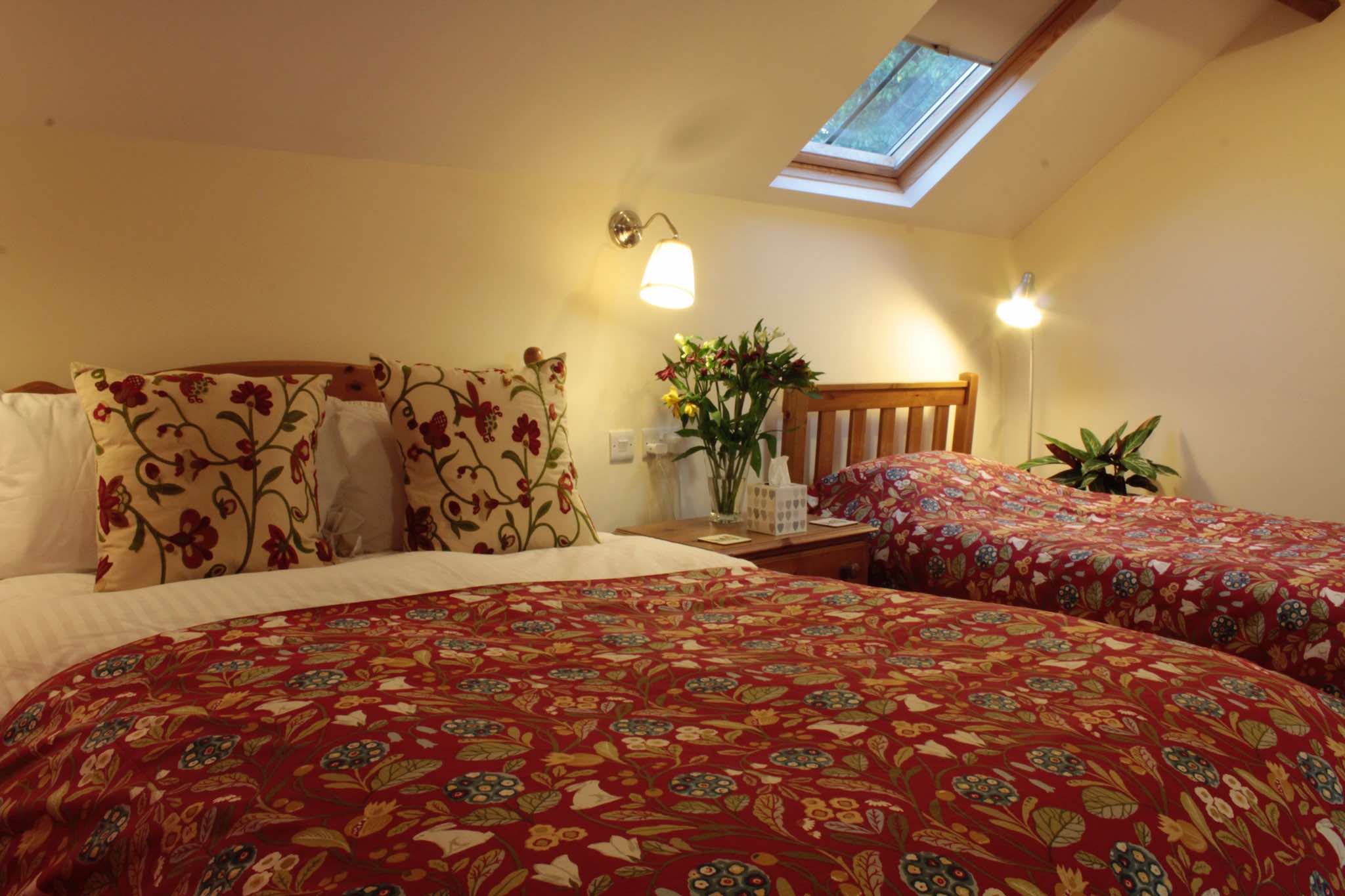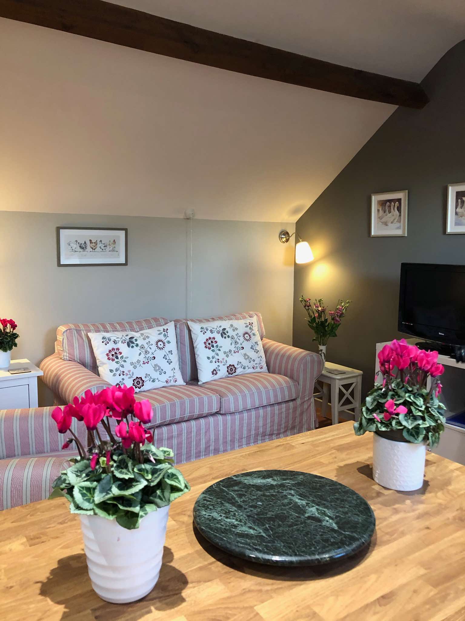 A beautiful conversion - with its exposed beams and original 'bulls-eye' window, through which the hay would've been 'pitched' through - The Hayloft is a first-floor apartment, in a separate building to The Old Dairy and The Shippon, and sleeps up to three people. Featuring an open-plan living area with large full-size fitted kitchen (including oven, hob, dishwasher, fridge and microwave), dining table and chairs, comfy sofa and armchair, and smart TV.