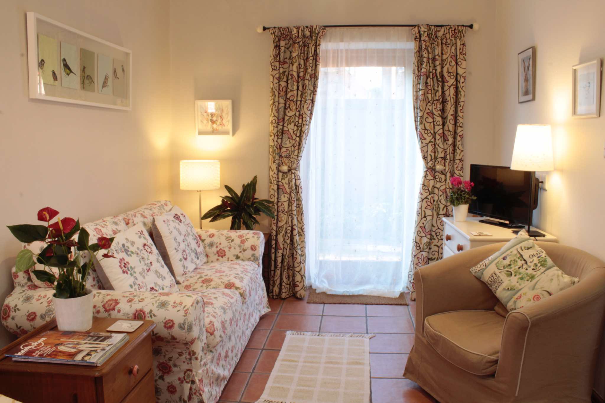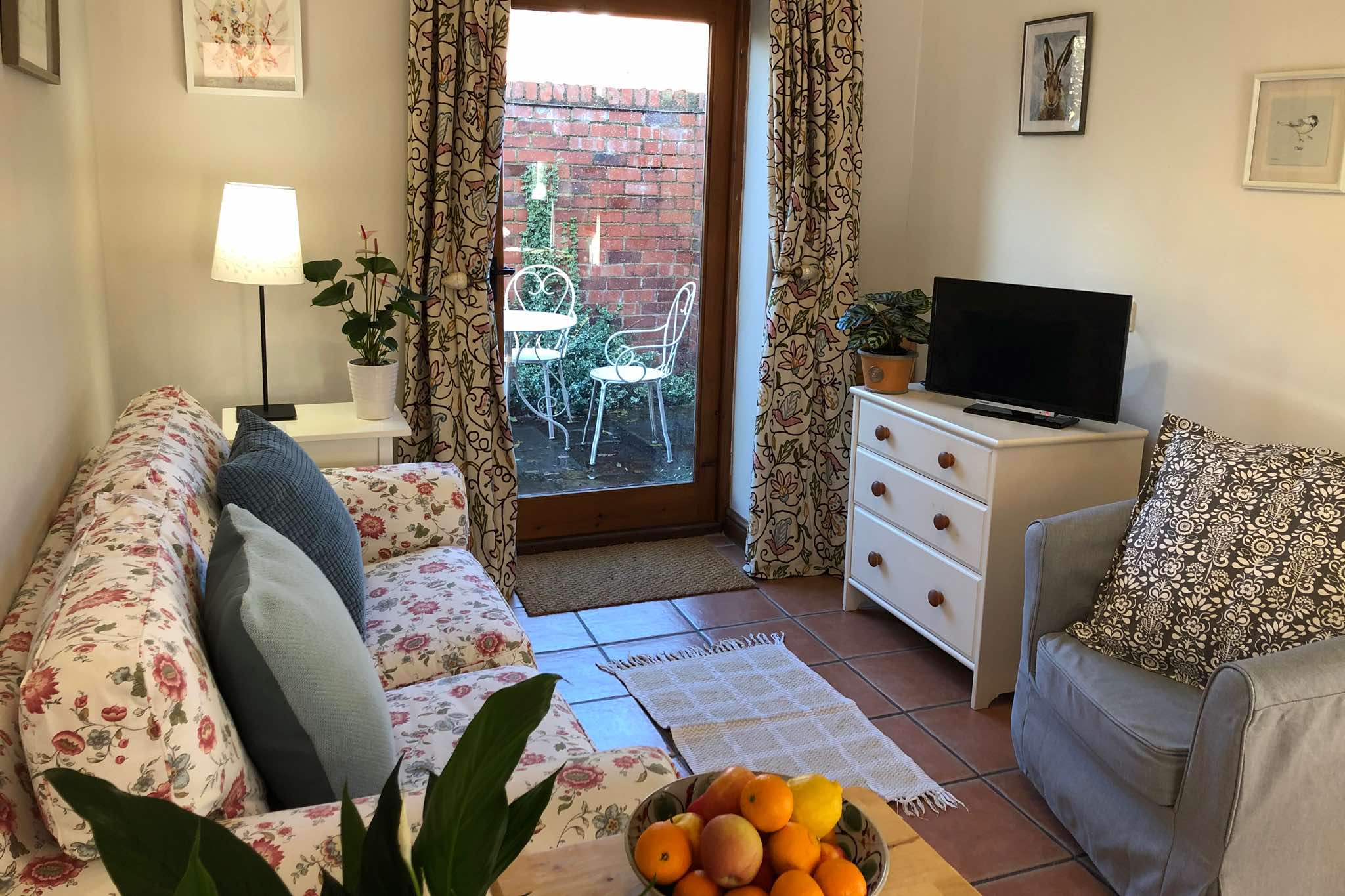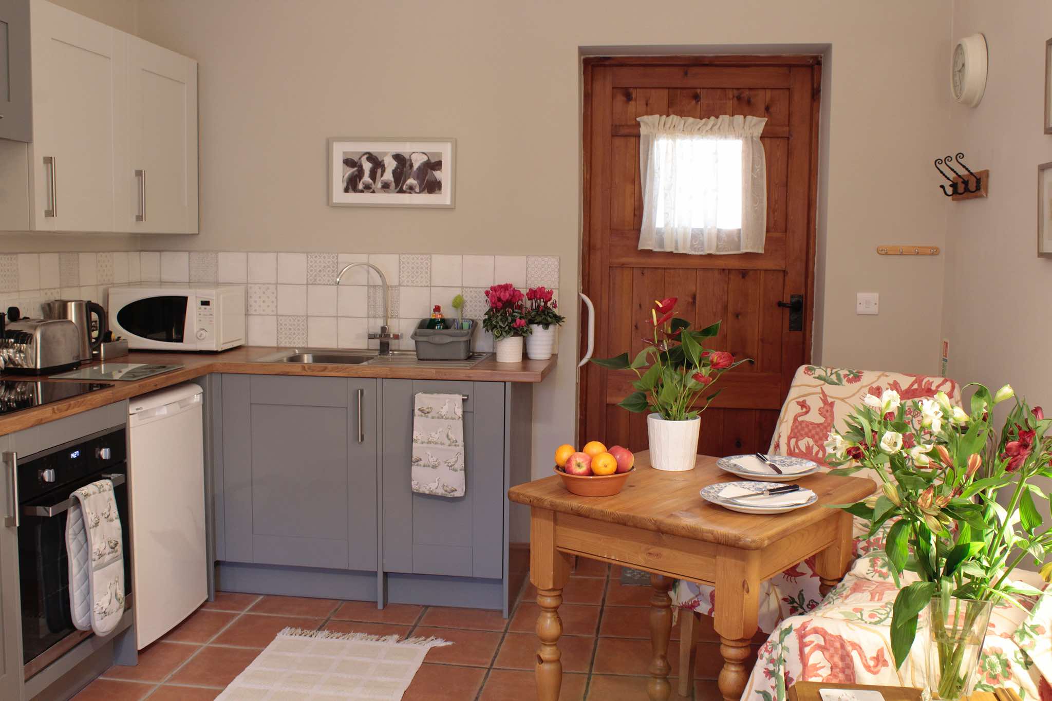 The Old Dairy is a cosy ground-floor conversion, sleeping up to two people, and comes with exposed beams and an open-plan living area, with comfy sofa and armchair, smart TV, and a full-size fitted kitchen (new in 2019) with oven, induction hob, dishwasher and microwave. Outside, there's direct access onto a large patio with seating - part of a south-facing walled garden.